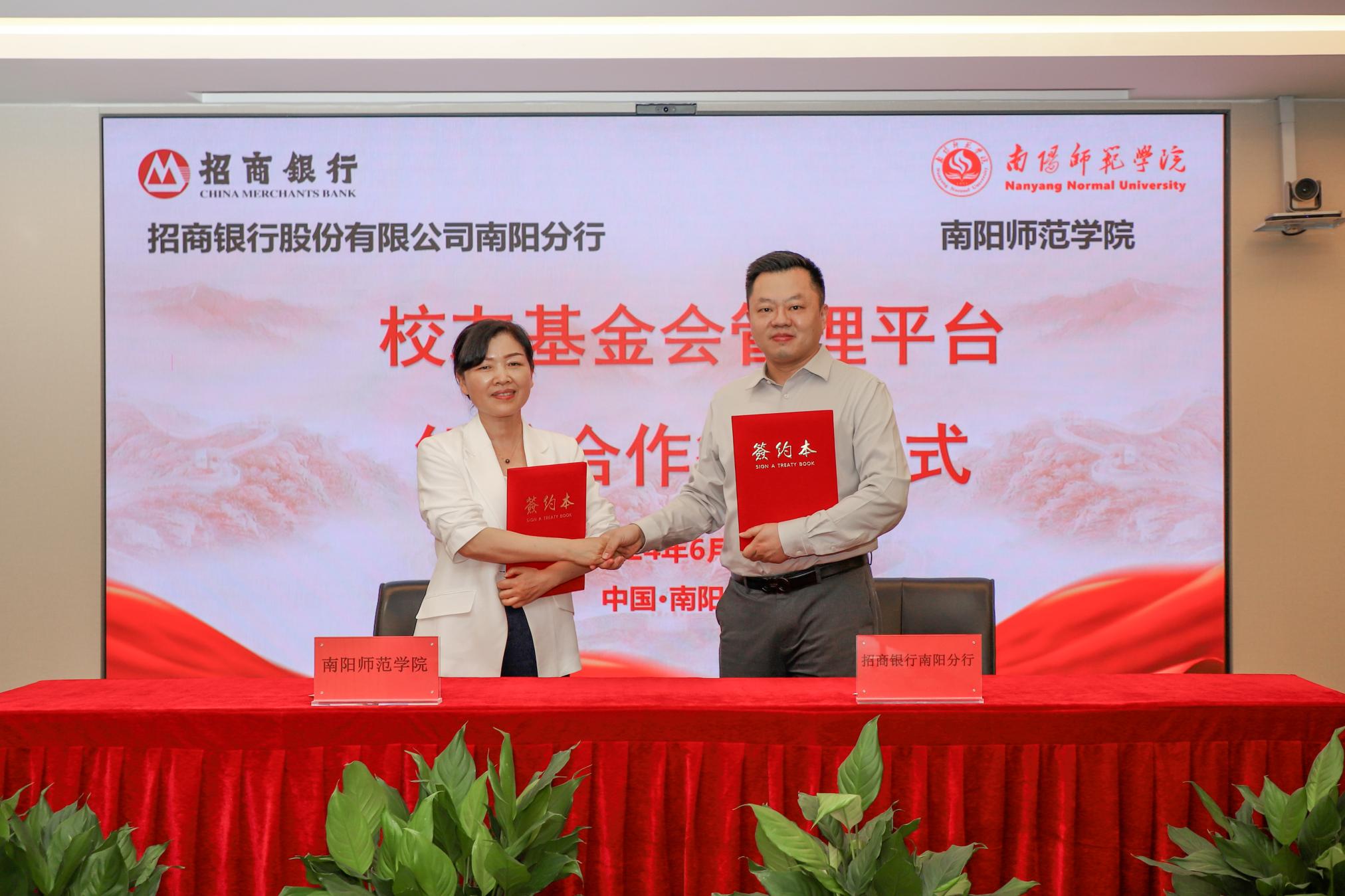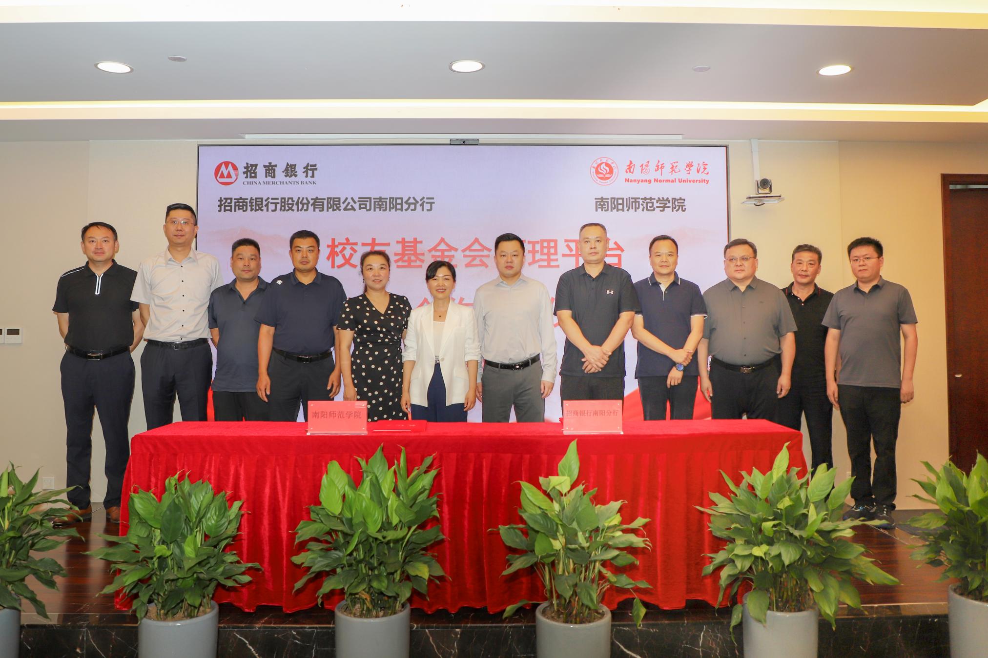 本网讯(通讯员 李剑楠)6月26日下午,副校长王岩携国内合作处、校友工作办公室、人工智能与软件工程学院、法学院、教育科学学院、新闻与传播学院、外国语学院、体育学院等负责同志赴招商银行南阳分行开展“校友会暨基金会管理平台”捐赠签约活动,并结合大学生就业实施访企拓岗促就业专项行动。招商银行南阳分行行长石钧出席陪同,行长助理孙培轩主持。